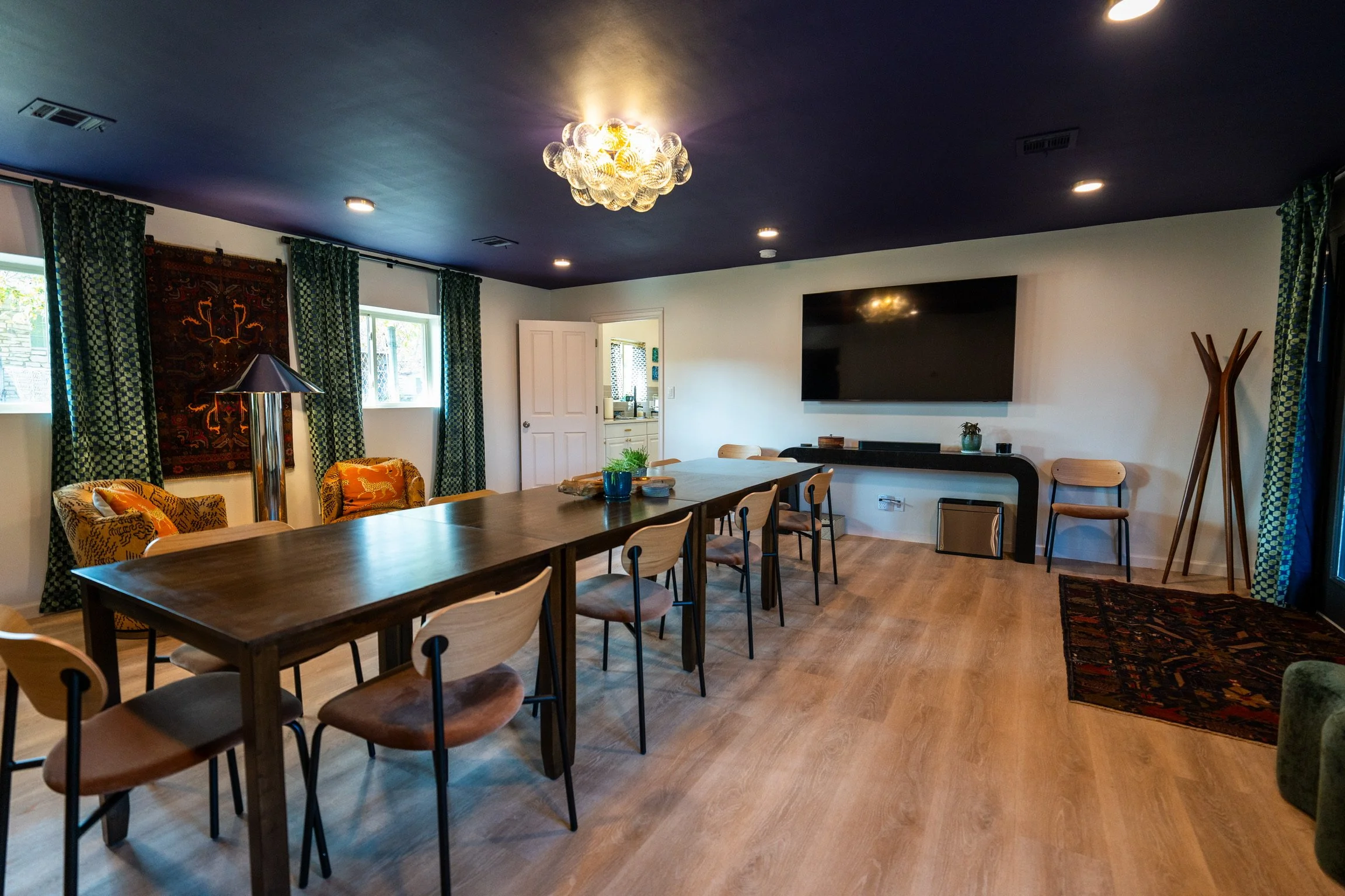 Maeve House was meticulously designed to provide members with a beautiful place that inspires community, creativity, playfulness, and collaboration. Within the House are 2 large open coworking spaces, 2 small open spaces that can be used for meetings, a creative space for meetings, a break room, a multi-purpose meeting room with it’s own entrance, and four restrooms. Three doors in back of the House open to a patio and the back lawn which can be used for coworking and events.